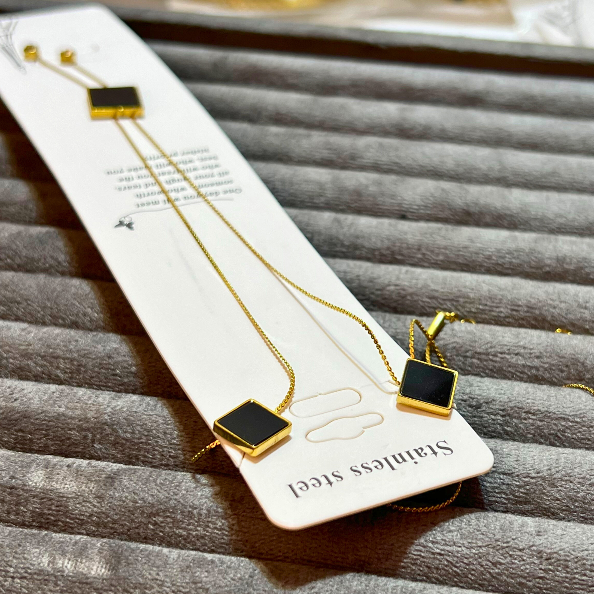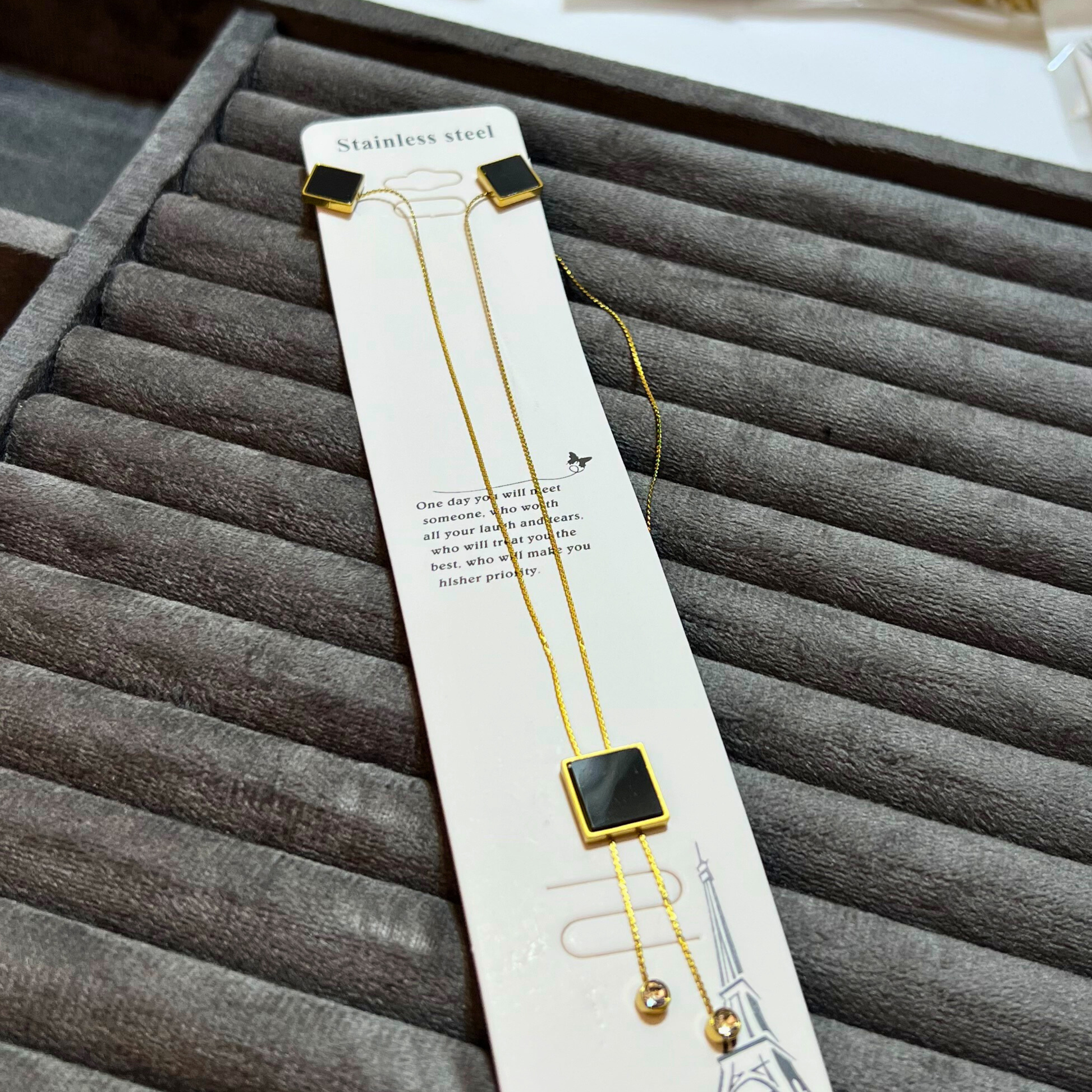 Ek mukammal tohfa jo unhein zaroor pasand aayega! 🎁 Yeh Square Drop Set (Necklace + Earrings) gift dene ke liye ideal hai. "Geometric Shapes" aaj kal fashion mein bohat in hain
